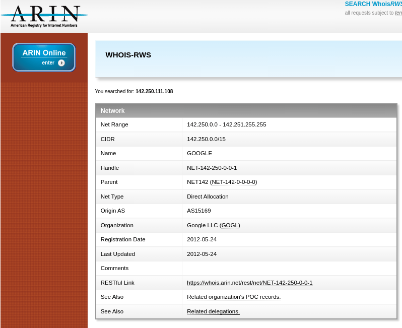 Doing a quick whois lookup shows that 140.250.111.108 belongs to Google.