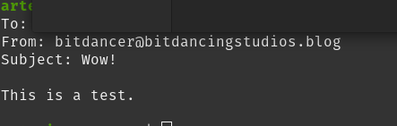 In gmail, it looks like the from field is still being pulled from the SMTP envelope, not the mail object. I believe this is a good thing because it prevents the sender from being obfuscated. Meaning that a bad actor can’t pretend to be my grandma by putting FROM: yourgrandma@gmail.com in the message body. I’ll need to check on that as we move through the next few parts.